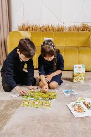 Игровой набор подойдёт как малышам, которые только начинают изучать алфавит, так и тем, кто уже знаком с буквами и начинает складывать их в слова. Для первых в наборе есть азбука-сказка, которая поможет быстро и легко запомнить буквы русской языка, а для вторых есть настольная игра на чтение слогов и открытки на первое чтение и письмо.